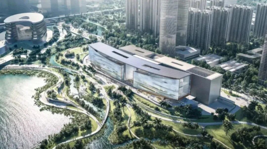首座专门用于展示国际艺术的美术馆,位于光明科学城中心,本身就是一件建筑艺术品。它的设计理念叫“同舟共济”,建筑像两艘并行的方舟,寓意连接东西方文化。