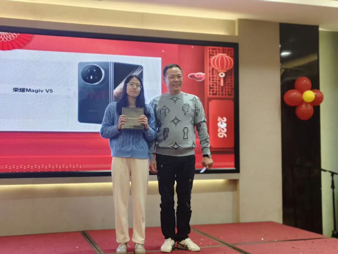 所有奖品均在热烈掌声与欢呼声中送出,中奖同仁笑逐颜开,未中奖的同事也通过阳光普照奖收获了满满心意。礼物虽轻,情谊深厚,每一份奖品都承载着公司对员工辛勤付出的感谢与关怀。